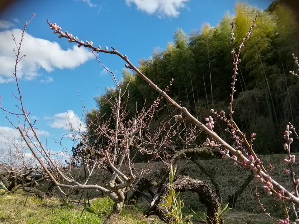 桃畑は、開花間近